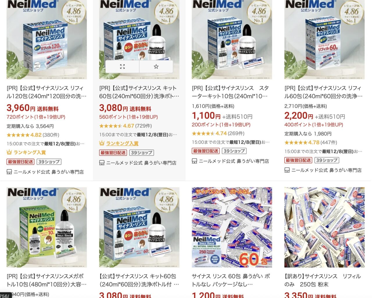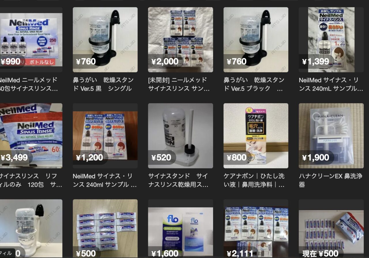 サイナスリンスはメルカリなどのフリマアプリでも購入できます。未使用のものが出品されていたりするので、お得に購入できるかもしれません。