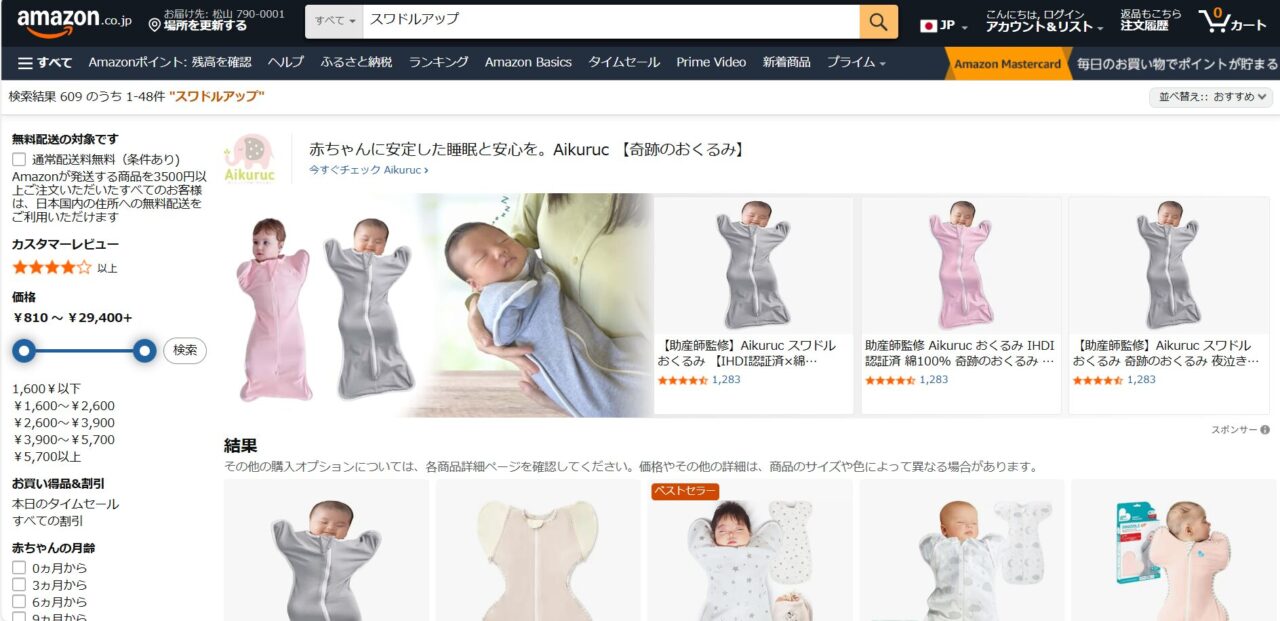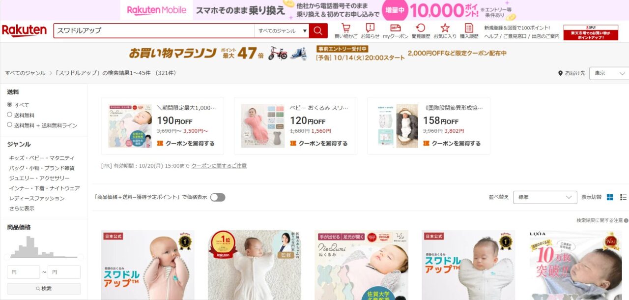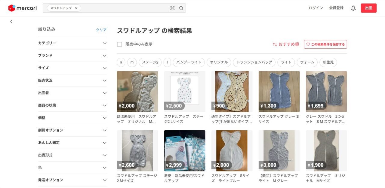 スワドルアップはメルカリなどのフリマアプリでも購入できます。未使用のものが出品されていたりするので、お得に購入できるかもしれません。