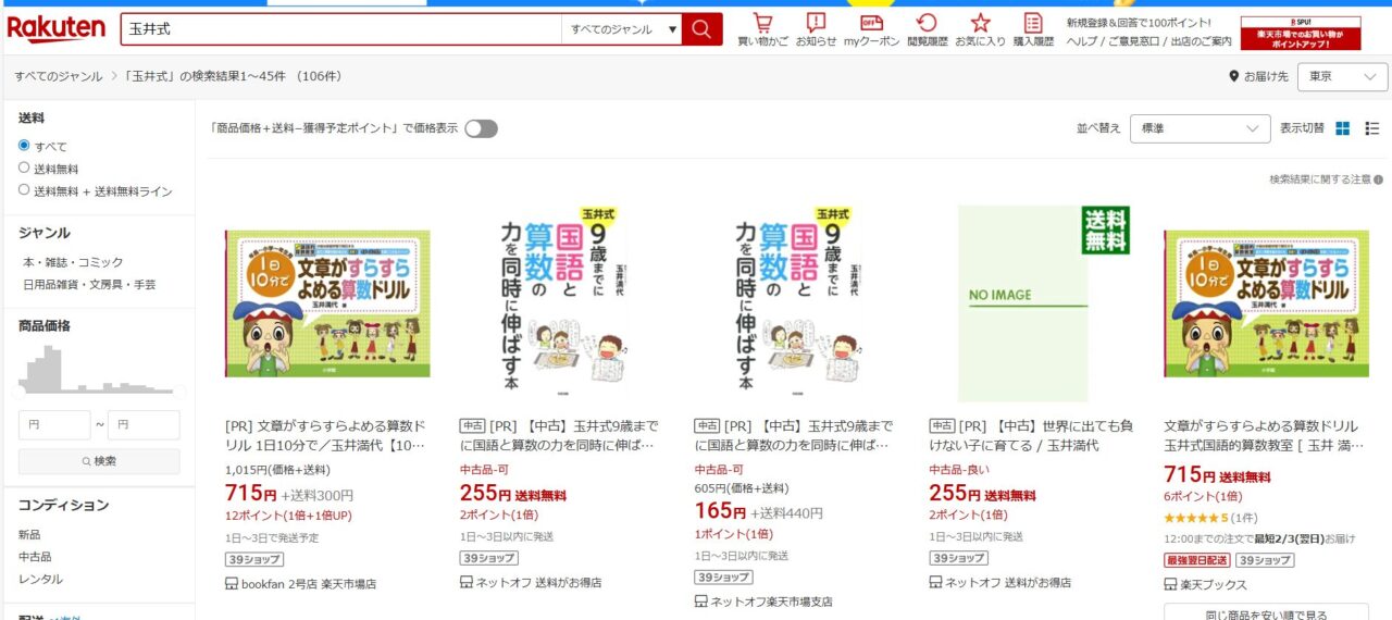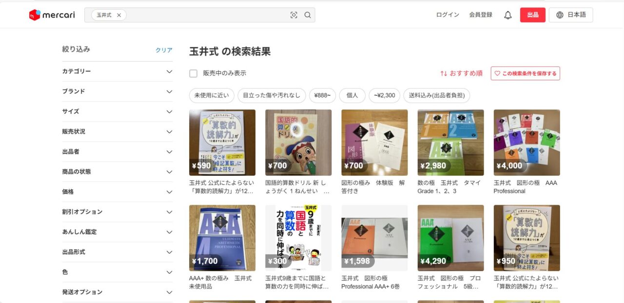 玉井式はメルカリなどのフリマアプリでも購入できます。未使用のものが出品されていたりするので、お得に購入できるかもしれません。
