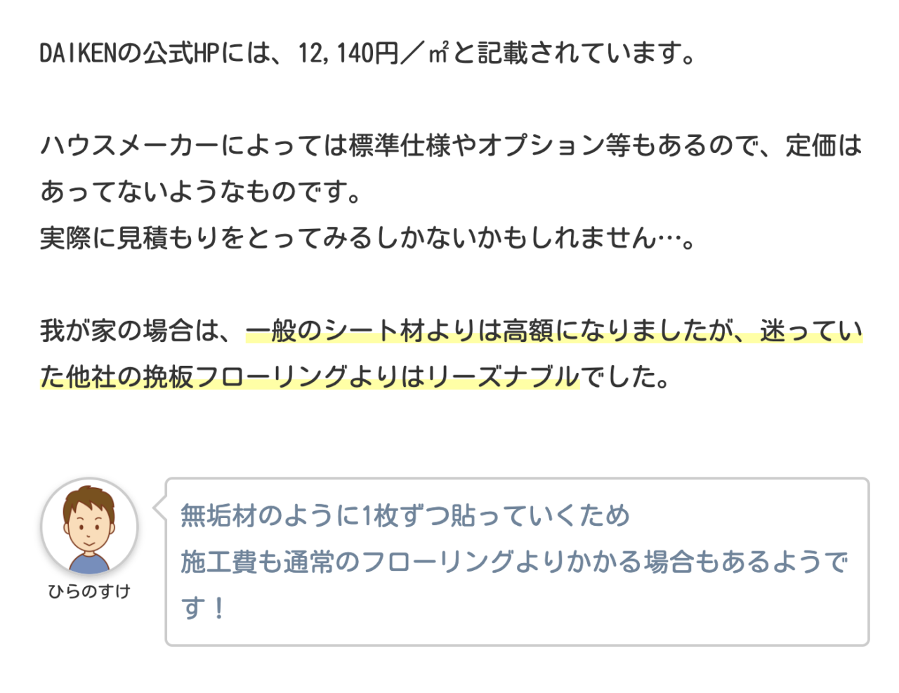 トリニティ 床のデメリットの5つ目は、「価格がやや高めなこと」です。