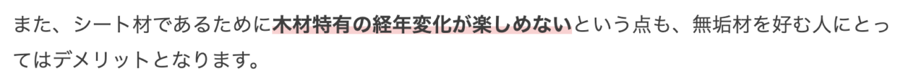 トリニティ 床のデメリットの3つ目は、「経年変化を楽しめないこと」です。
