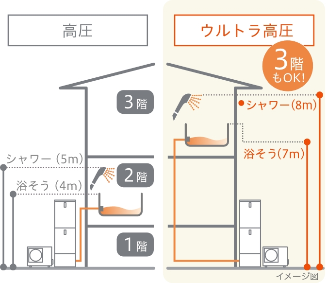 出典:【エコキュート】高圧タイプとウルトラ高圧タイプの違いを教えて下さい。 - 電気給湯機器 - Panasonic