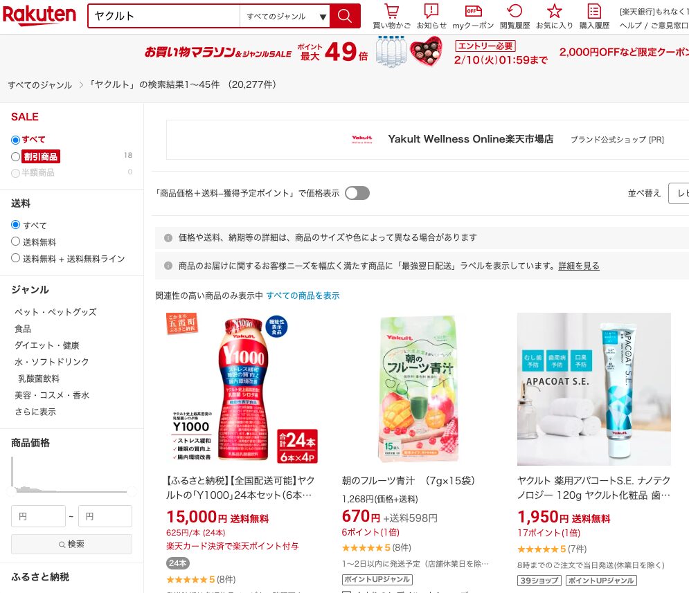 *ヤクルトはメルカリなどのフリマアプリでも購入できお得に購入できるかもしれませんが、今回、メルカリでの販売は見つかりませんでした。