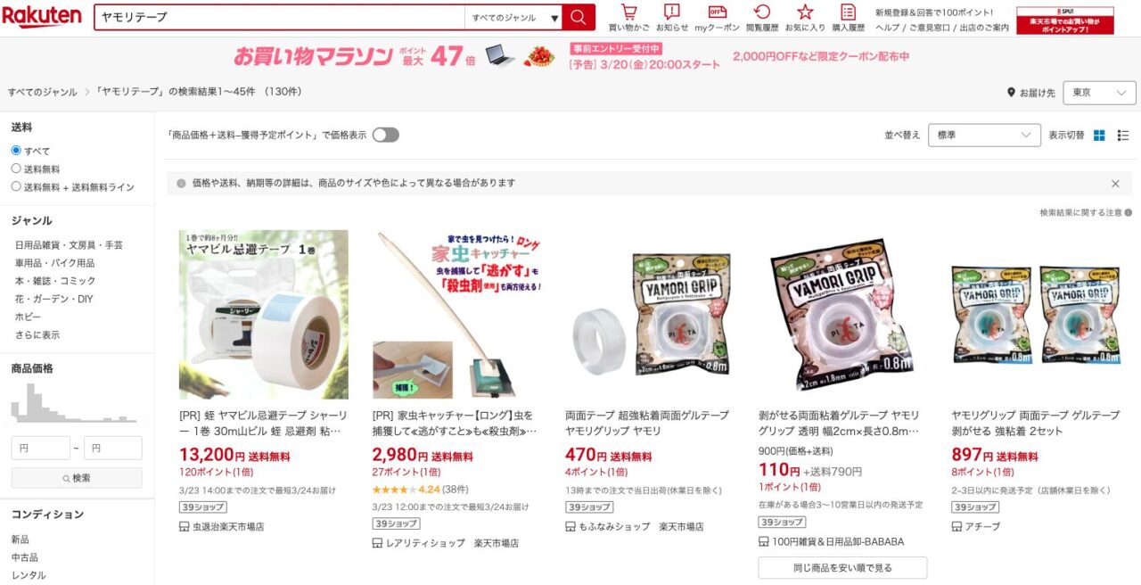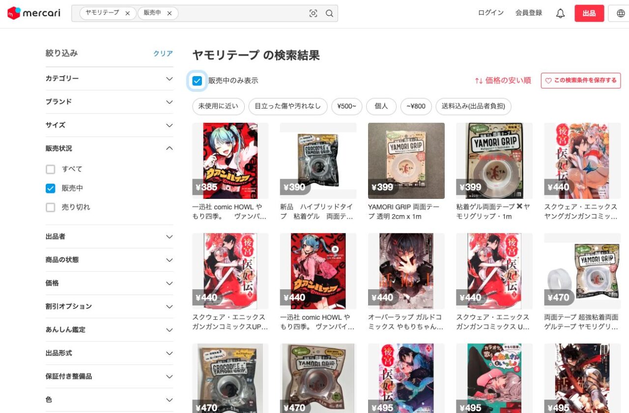 ヤモリテープはメルカリなどのフリマアプリでも購入できます。未使用のものが出品されていたりするので、お得に購入できるかもしれません。